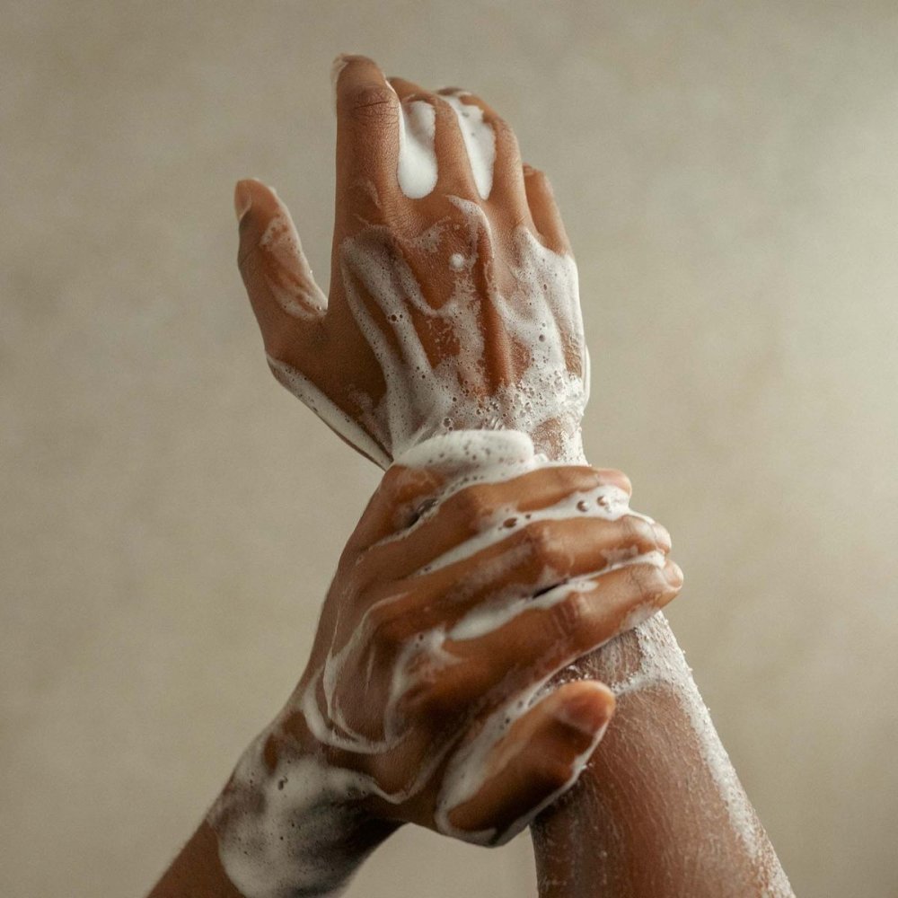 - Naneste malé množství na mokrou pokožku nebo do dlaní/houby.